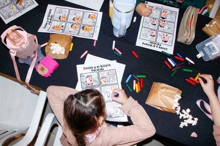 Uno de los momentos más destacados fue la actividad en la que los niños crearon sus propias alcancías. Usando los materiales y personajes del cuento, aprendieron de forma lúdica sobre la importancia del ahorro.